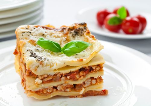 Starting off with whole wheat lasagne sheets, add chopped tomatoes, lean minced beef, carrots, celery sticks, and onions. Seasonings can include (but are not necessarily limited to) thyme, balsamic vinegar and garlic. We also recommend adding a generous amount of grated parmesan and nutmeg within the tomato sauce for even more flavor.